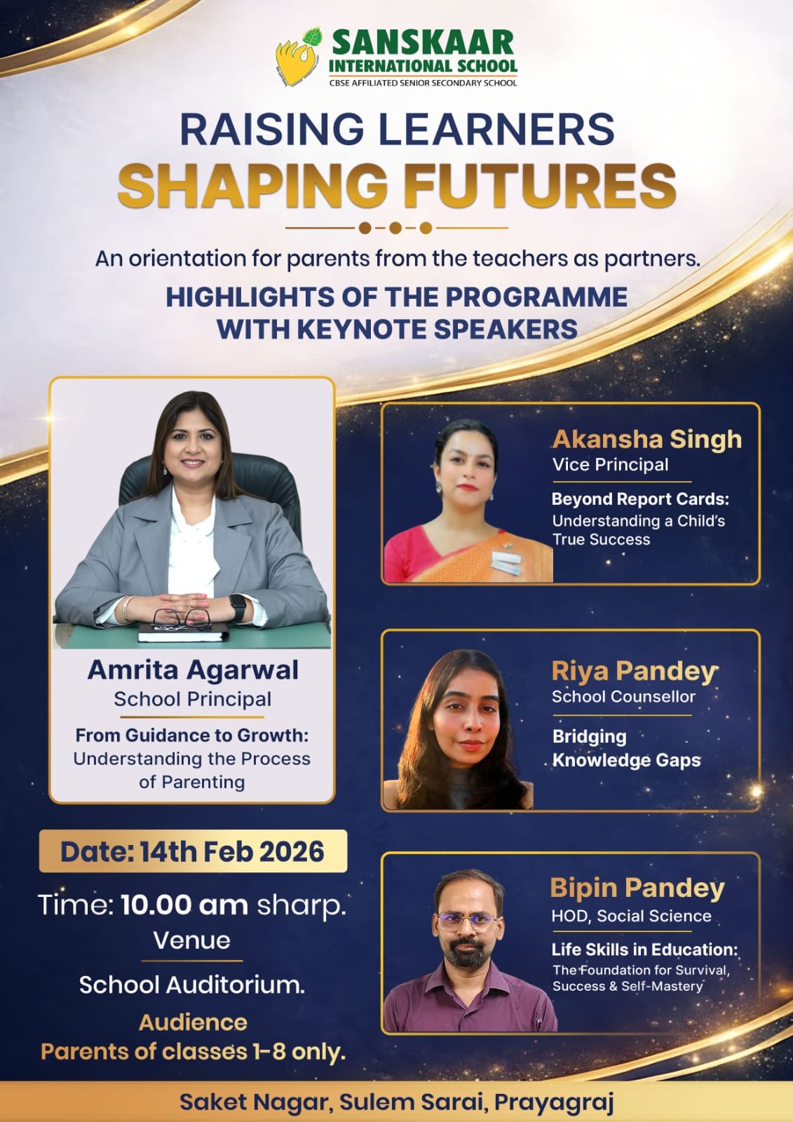 This is to inform you all that tomorrow i.e. on 14th February 2026 there will be a Parent Orientation program for the parents of classes 1–8.