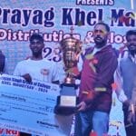 Another feather in the cap has been added to the school as the Girls basketball team of Sanskaar International School has bagged yet another winner’s trophy at the Interschool Basketball Tournament in the Under 19 category at KALRAV 2024-25 hosted by Shakun Vidya Niketan, Devrakh, Naini, Prayagraj held on 29th July to 31st July 2024.